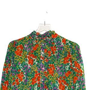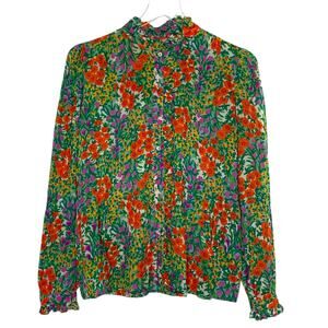 Banjanan XS Button Front Floral Shirt Ruffle Collar Lightweight Cottage Boho