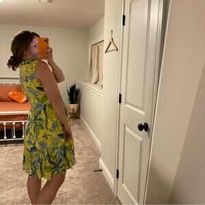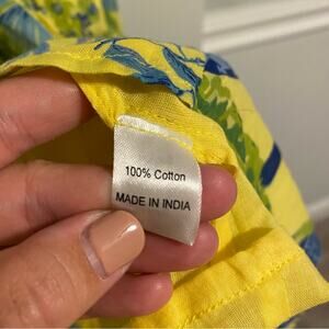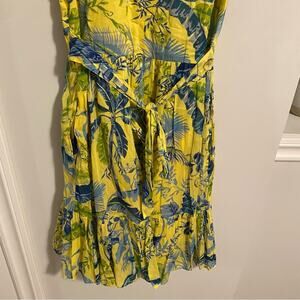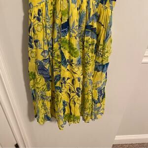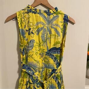 Banjanan Yellow Blue Cotton Bird Floral Mini Dress XS