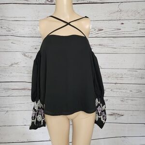 Banjara Off Shoulder Long Bell Sleeve Black Blouse Medium NWT