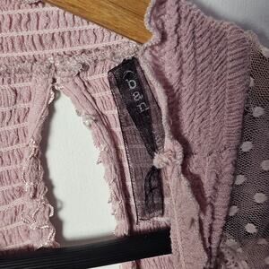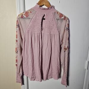 Banjara Pink Mock Neck Long Sleeve Embroidered Top Size L Boho Soft Girl Fairy