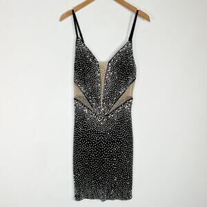 Banjul Beaded Rhinestone Black Bodycon Mini Formal Dress NWOT