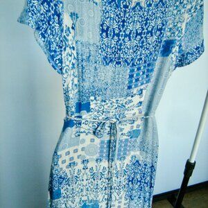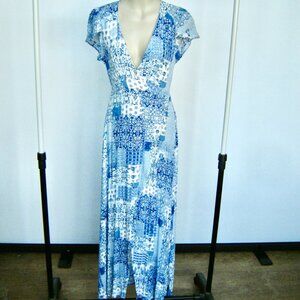 Banjul Soft Faux-Wrap Maxi Dress Size M Adjustable Tie Back - Blue/White print