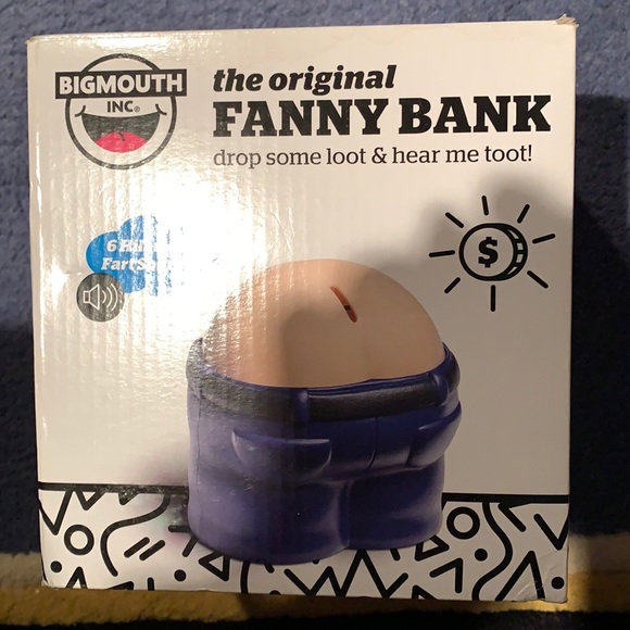 Big mouth Fanny bank, it’s hilarious, drop some loot in and hear it toot, 6 hilarious fart sounds. battery operated.