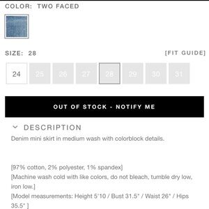 Bank NYC two faced color block denim mini skirt tagged size 28 in excellent condition,no flaws.love the frayed raw edges with two tone color denim.please refer to photos for measurements and details