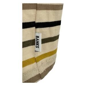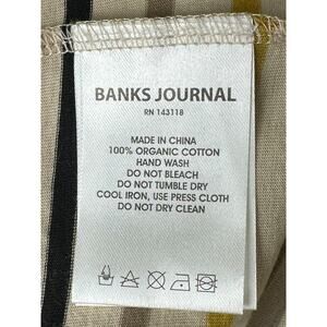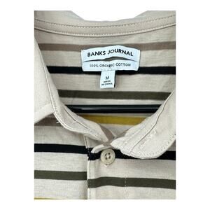 Banks Journal Shirt Men Medium Polo Tan Stripe 100% Organic Cotton Casual Preppy