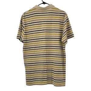 Banks Journal Shirt Mens Medium Polo Tan Stripe 100% Organic Cotton Short Sleeves Casual Preppy Sustainable Eco Friendly