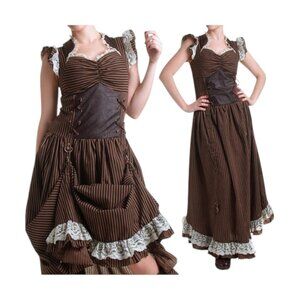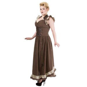 Banned Apparel Brown Long Maxi Black Striped Steampunk Corset Dress - 2XL