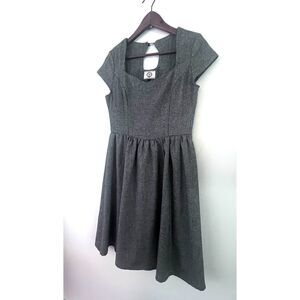 Banned Apparel Dancing Days herringbone pattern tweed wool like fabric with a cap sleeve. Black and white with a shiny silver woven into it. Fully lined and a side zipper. In good condition. Women's Size Medium.