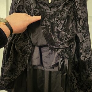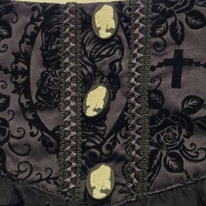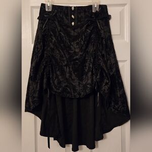 Rare! Banned Apparel high-lo skirt in an embossed velvet fabric with crosses and skull victorian women with matching cameo buttons.