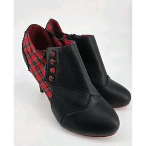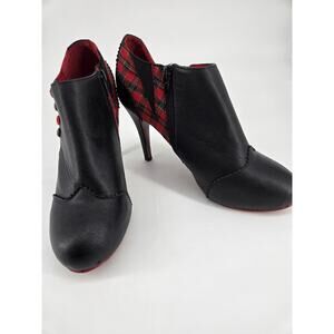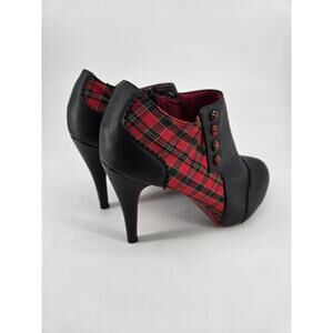 Banned Brand Black Red Tartan Plaid Goth Rockabilly High Heels Shoe Sz 40 US 9.5