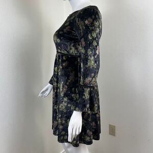 Banned Retro Womens Size 14 Fair & Foward Floral Velvet Mini Dress Bell Sleeve