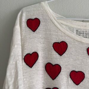 Banner Day Embroidered Hearts Tee 100% Linen Size Large