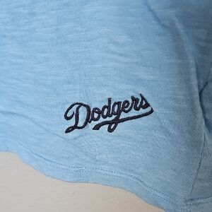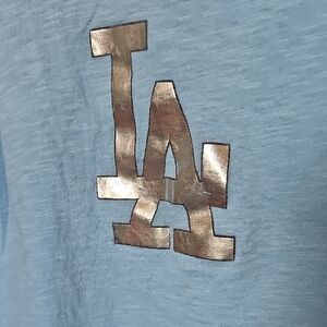 Show your team spirit with this light blue LA Dodgers tank top. Perfect for any casual occasion. 100% cotton, does stretch. Embroidered Dodgers in navy blue in the lower front corner. Silver metallic LA at the chest. Tiny mark on the front, see close up, otherwise great condition! Cheer for your favorite team at the field, at home or wherever you can see the dodgers play! Runs small for an XL, I would say this fits closer to a smaller side large. girly, feminine, sports, baseball, colorful