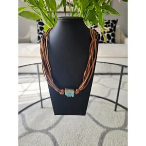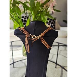 New without tags, Bansri Brown Crystal Necklace New. Vegan Suede strands, with Blue Crystal center stone. Back toggle closure 3 ring adjustable