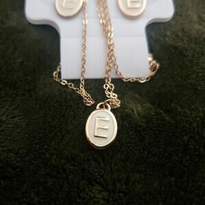 Bansri Designs Fashion Jewelry "E" Insignia Earring Necklace Set 14K Gold Dipped