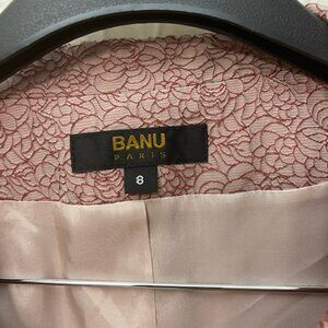 Banu Paris 2pc Skirt Suit Set, Pink Floral Etched/print Buttons Front, with inside lined.