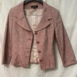 Banu Paris 2pc Skirt Suit Set, Pink Floral Etched/print Buttons Front, Size 8