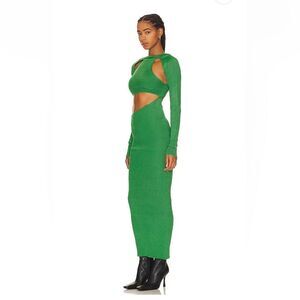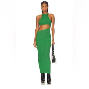 Baobab Alora Hunter Green Knit Maxi Dress Cut out shrug Revolve Frwrd Sz L NWT