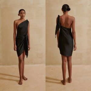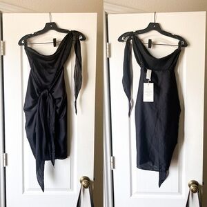 Baobab Dress Marea Mini Satin One-Shoulder Adjustable Tie Beach LBD Black XS NWT
