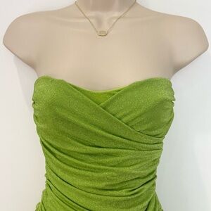 Baobab Irene Mini Dress Strapless Draped Green Shimmer Small Bodycon Chic Party