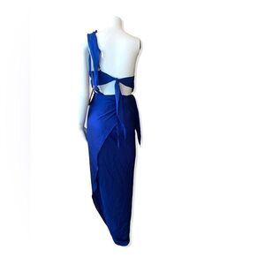 One shoulder top: back tie closure with adjustable shoulder strap and accent sash detail