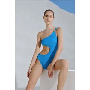 Baobab Tamboril One Piece Swimsuit Juno Blue Glitter One Shoulder Cutout Ring Accent Sz S
