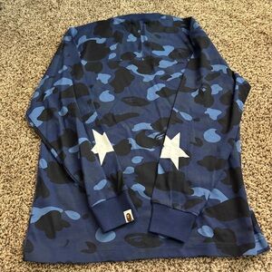 Bape Blue and Black Long Sleeve Camouflage Tee