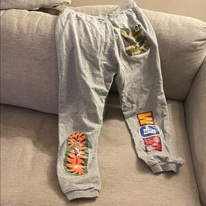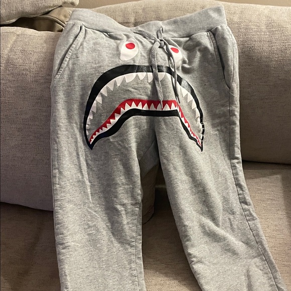 Bape Shark face Stylish gray sweatpants with iconic face design on front.