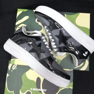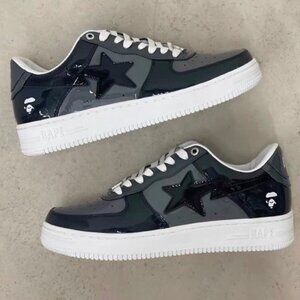Stylish Bape sneakers with a unique design. Features a star logo on the side. Perfect for casual wear.