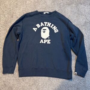 Vintage Bape navy crewneck sweater. Small non noticeable hole on back left arm (pictures 6 & 7)