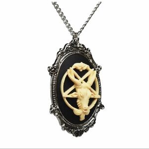Baphomet Goat Head Inverted Pentagram Cameo Necklace Pendant Occult Metal Gothic