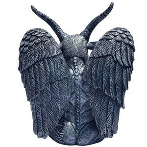 𖤐Featuring two 3 inch glass salt and pepper shakers on a resin Baphomet sculpture measuring 6.5 inches tall and 5 inches wide!