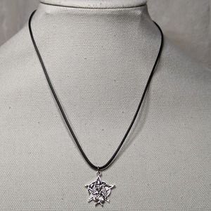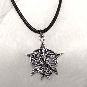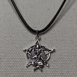 Baphomet Pentagram Satanic Silver Charm on a Rope Necklace