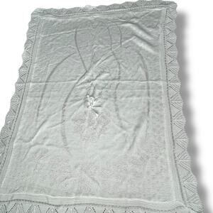 Lovey Plush Stuffed Animal Baby Security Blanket Christening Receiving Knit White ~27" x 34"