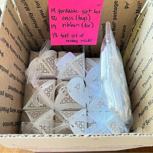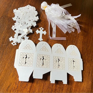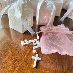 Baptism Favor Boxes Set w/ rosary inside Baby Shower Christening Small Gift Bags