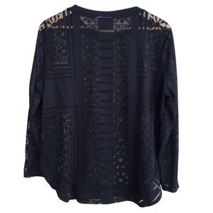 Bar III Black Semi Sheer Burnout Long Sleeve Size XL
