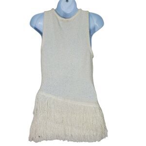 Bar 111 Womens Sleeveless Knit Top Small Ivory Fringe Stretch Pullover Swing