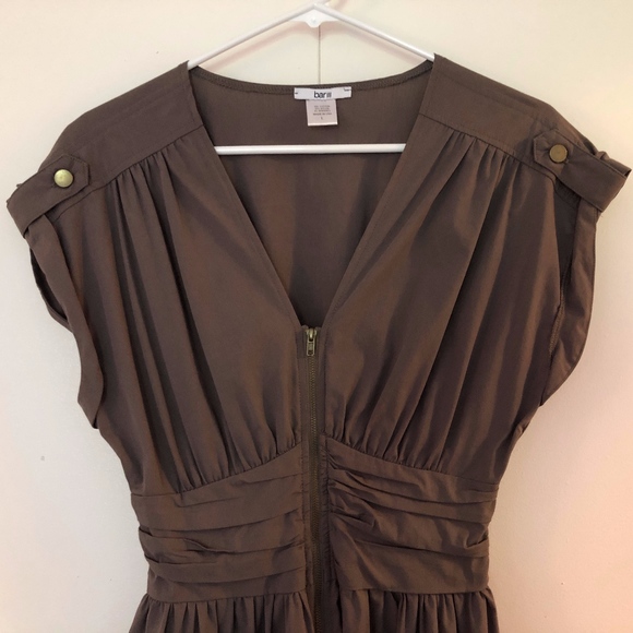 V-neck fit & flare dress, Macy’s brand. Subdued/Olive Green. GUC, worn once for graduation ceremony. Front zipper, flattering band detail at waist. Rolled, cap sleeve.