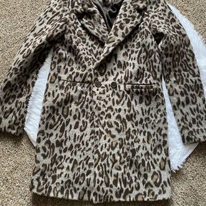 Bar III Animal Print Wool Blend Lined Coat Button Front Womens Size Small