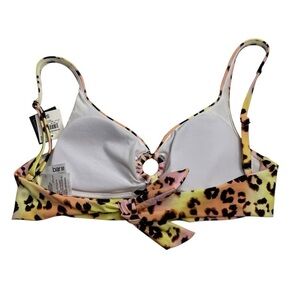 Top: Animal-Print O-Ring Bikini Top, removable soft push up cups, tie back closure, adjustable straps, sweetheart neckline, O-ring and cut out front details