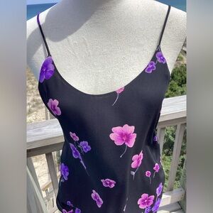 Add a pop of color to your wardrobe with this chic Bar III floral cami! Featuring a sleek black background with vibrant pink and purple floral print, this lightweight tank is perfect for layering or wearing on its own. The adjustable spaghetti straps and flowy fit make it a comfy yet stylish choice for both casual and dressy occasions.