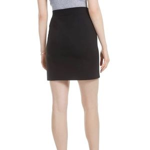 An O-ring trim zippered detail defines this mini skirt from Bar III.