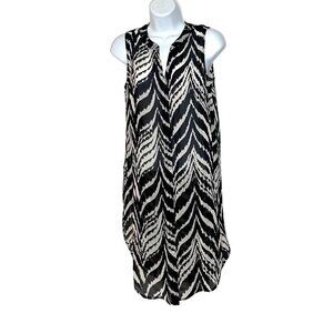 Bar III Black White Zebra Print Button Down Sheer Long Layered Top Sz XS