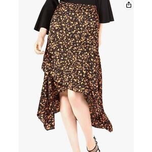 Tags: Bar III, Tiered, Floral Pattern, Midi Skirt, Flowy, Orange, Black