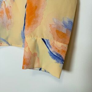 Bar III Blue and Orange Fitted Long Sleeve Blouse with Zip Closure Size M
