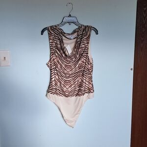 Bar III Bodysuit Women's XL Cowl Neck Animal Print Contemporary Trendy Statement