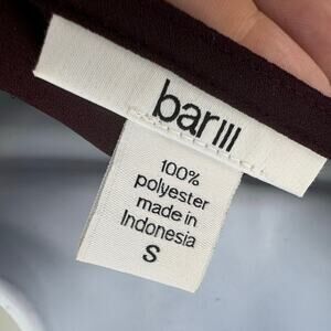 Bar III burgundy long sleeve V-neck chiffon blouse, women's size small. This hi-low blouse features a relaxed fit, perfect for layering or wearing on its own for a stylish look. The lightweight chiffon fabric adds an elegant touch, ideal for both casual and dressy occasions.