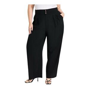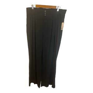 Bar III Button Front Wide Leg Black Pants Trouser Plus 16W High Waist Pockets