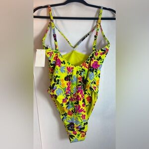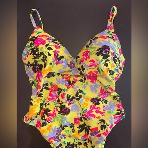 Bar III CITRON Floral Chic Yellow One-Piece Swimsuit US Size Medium