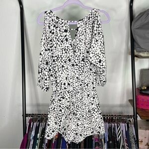 Bar III Cold Shoulder Black & White Spotted Cut Out Romper